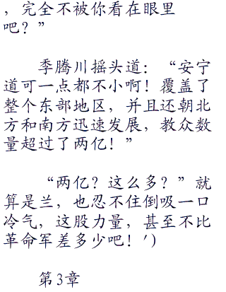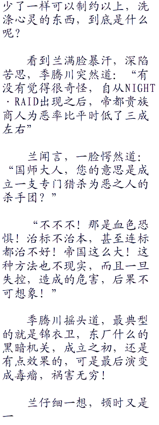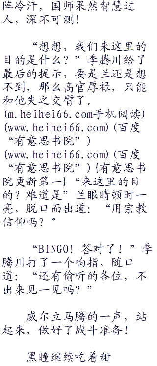 “你的胆子很大!兰!”季腾川语气淡然道,没有生气也似乎没有认同,仿佛在听故事一样。