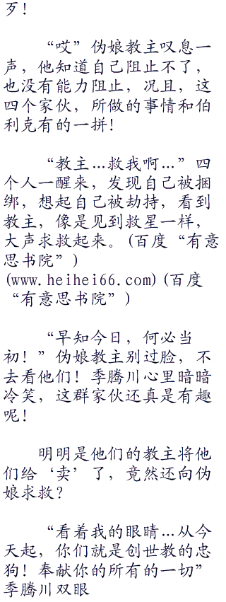 教主摇摇头,道:“不是我不相信,而是你确定你是一个人吗?”