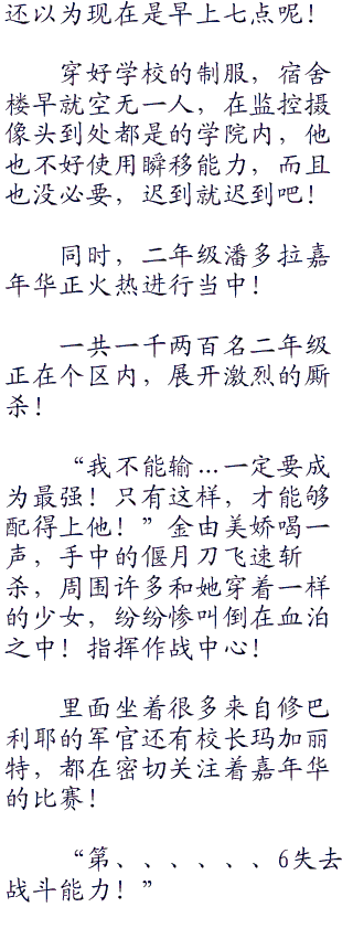 “恭喜学弟通过测试!从今天起,你就是西杰的一份子了!这是你房间卡还有校服!”金由美看到川从虚拟室出来,脸上洋溢着欢喜的笑容,甜甜道。<a href="hei." target="_blank">hei.</a>