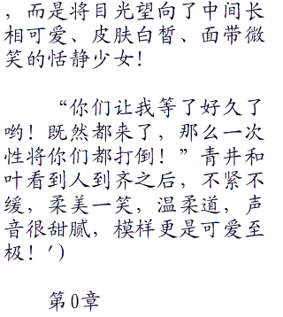 季腾川开始整理思路,零度战姬中,最出名的两位女主角,一位是青井和叶,另外一位则是现在还不知道身在何处的小LOLI莎缇莱萨!