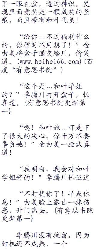 敲门声!季腾川神识一扫,发现门外站着的是由美学姐,而且还拿着一个盒子!