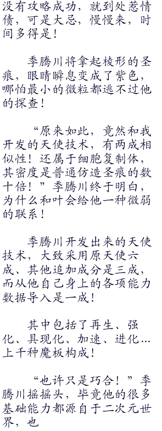 当然,季腾川也不需要他们的研究成果,因为他自己的演算能力,只要有数据,就可以瞬息分析出来。