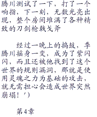 当然,季腾川还是一如既往的要么缺课、早退、逃课、开小差,劣迹累累,班上的女老师几次向校长玛加丽特诉苦,但是都被压下来!