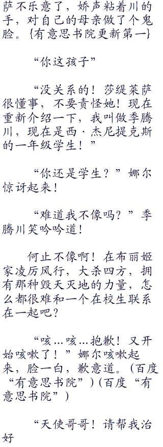 “天使哥哥!这是你本来样子吗?”莎缇莱萨俏脸好奇的问道,哥哥的样子变化好大啊!