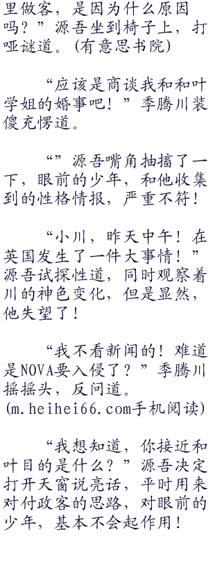 “年轻人很不错!”很简单的一句话,到了源吾口中,听在耳里,却像是话里有话!