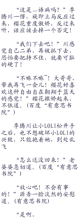 “那么可爱的小樱花!你想要什么呢?”季腾川觉得小LOLI还真挺可爱的,打趣的问道。