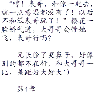 “不就一件玩具嘛!有什么了不起的!而且我会说,兄长你四岁的时候,还在尿床?”樱花撅起嘴,不高兴起来,露出表哥真小气的表情。