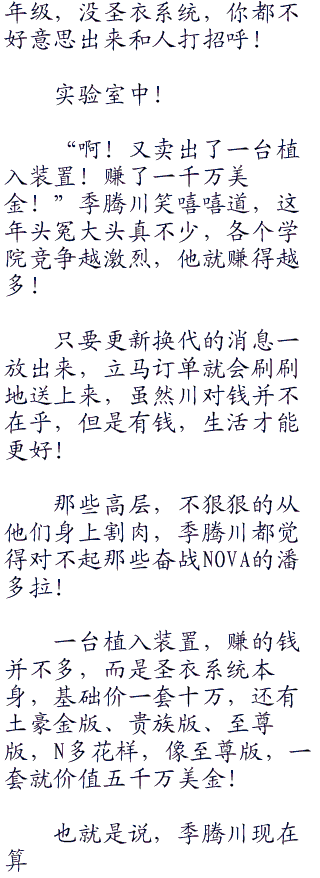 当然,季腾川的这项发明,让很多制御者都失业了,每一所杰尼提克斯招收的制御者数量明显都有了下调的趋势!