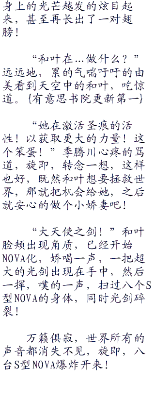 “和叶…的圣衣系统竟然可以飞?”由美目瞪口呆,望向季腾川。