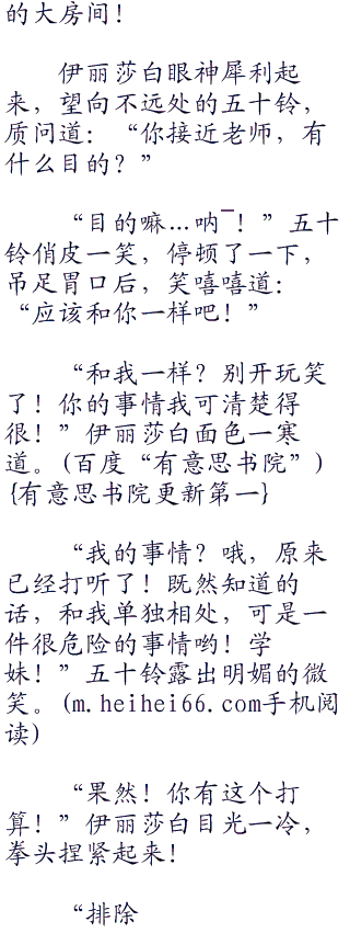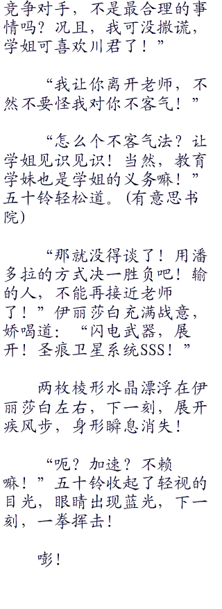 “三年级首席生!也没什么了不起的!我干嘛要放弃啊?”伊丽莎白自信自己的实力,不会输给其他人的,就算三年级又怎么样?