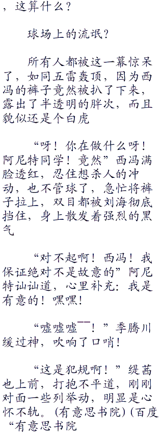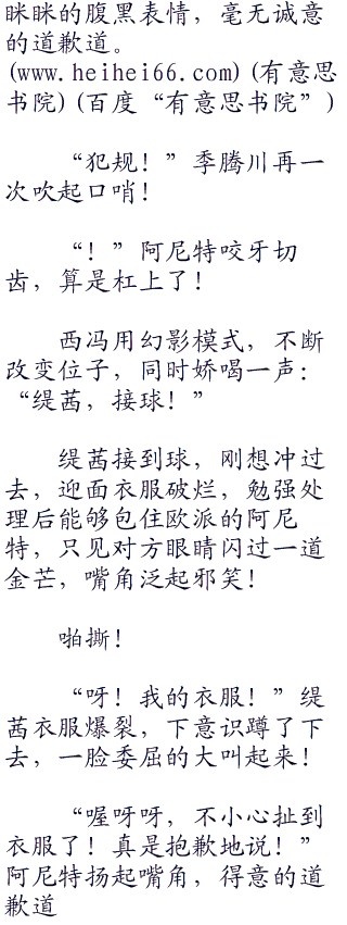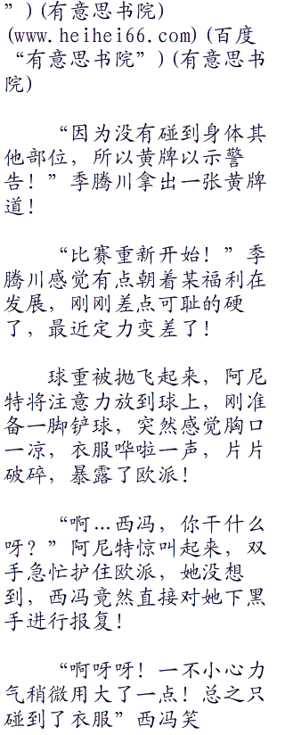 “很好,都掌握了,但是想要熟练运用,还差点火候,为了让大家放松一下,老师决定举办一场足球比赛!”季腾川宣布道。<a href="hei." target="_blank">hei.</a>