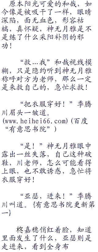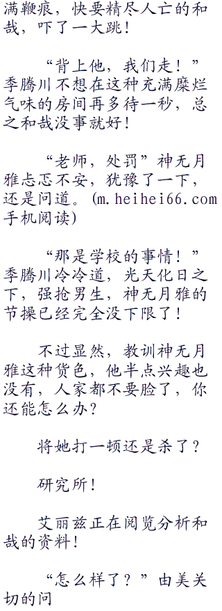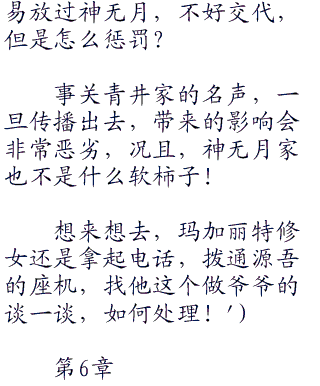 季腾川差点喷了,神无月雅这话,太打击人了,强奸了别人,还嫌弃人家短小细快?还给不给活路了?