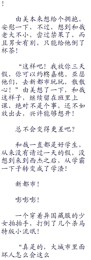 “是的!长老!”女孩子低着头,掩饰自己兴奋的表情,苦修N年,终于可以到外面的花花世界去玩了!
