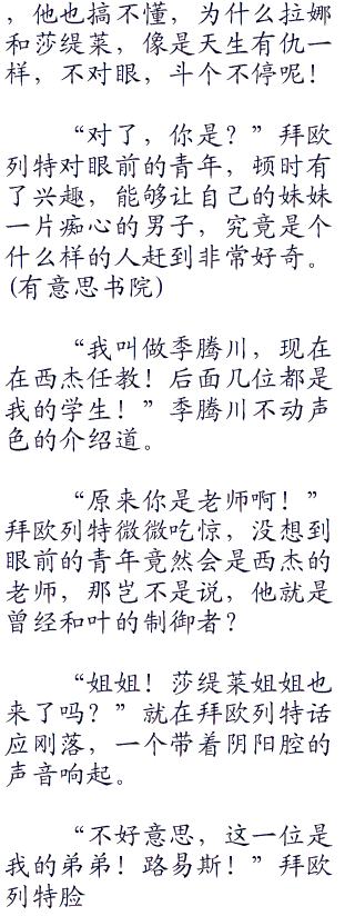 “莎缇莱萨?难道和老师有关系?”阿蒂亚一愣,不解道。“并非如此,你们还不知道莎缇莱的真实身份吧?”伊丽莎白嘴角露出一抹清淡的微笑,卖关子道。