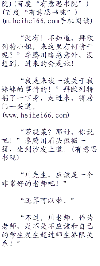 “老师,我们能不能换一个地方?总觉得这里”阿蒂亚踮起脚跟,在川耳边提议道,那种不男不女的怪调,让她全身鸡皮疙瘩都起来了。hei.