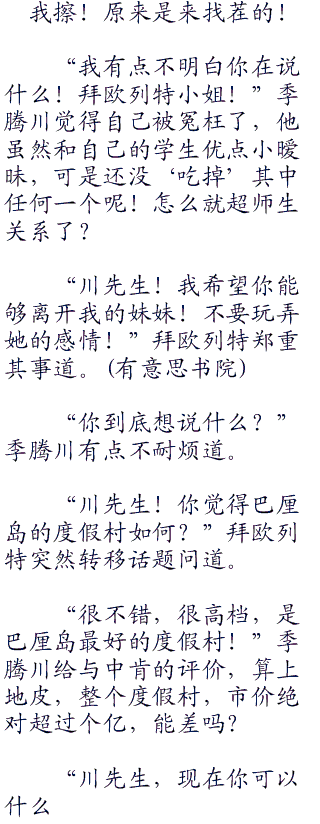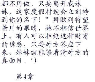 季腾川没注意到,自己和女生们的暧昧玩耍,全部都被拜欧列特看在眼里,本来不打算插手的,但是自己的妹妹,绝对不可以喜欢上一个如此花