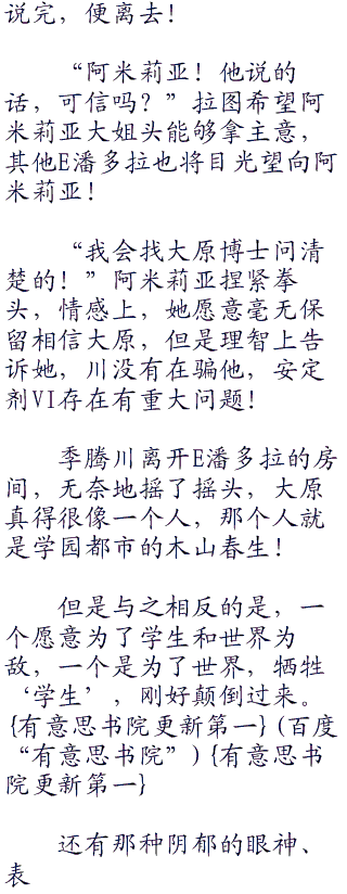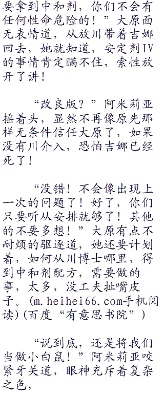 “你是说…安定剂是劣质货?”阿米莉亚心头一颤,一直最担心就是这个!