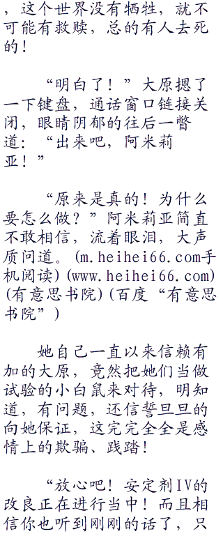 “不可能的…如果失败的话…吉娜她”阿米莉亚瞪大眼睛,有点无法相信川的话。