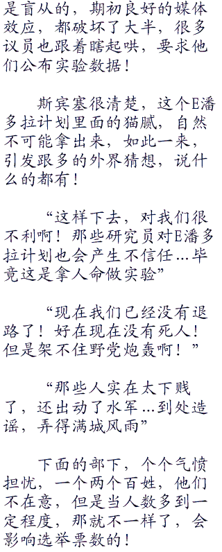 “再等等…再忍耐一会儿…拜托了各位…”阿米莉亚语气沉痛道,下一次的试验,自己第一个上,相信事情的真相会被人揭露出来!