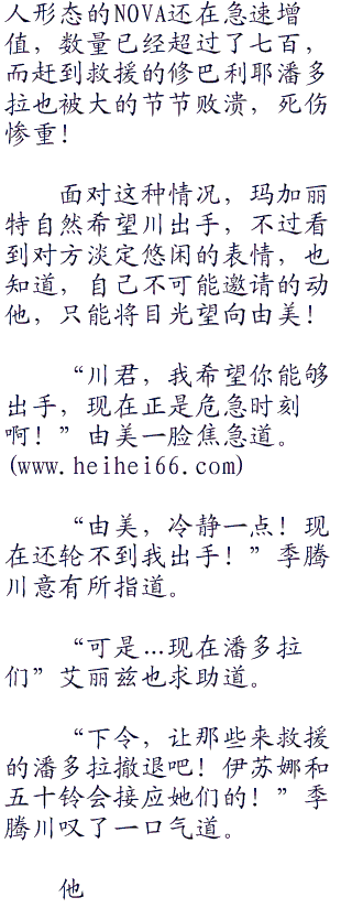 同时求救信也发到了修巴利耶总部,但是实战演练现场如今已经转变成了修罗场,新出现的人形态NOVA,以无疑匹敌之姿屠杀制御者和潘多拉!