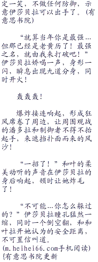 “明明是你强迫的…有你怎么做老师的?”西冯恨得直咬牙,但是声音还是显得极为甜腻,像是撒娇。<a href="hei." target="_blank">hei.</a>