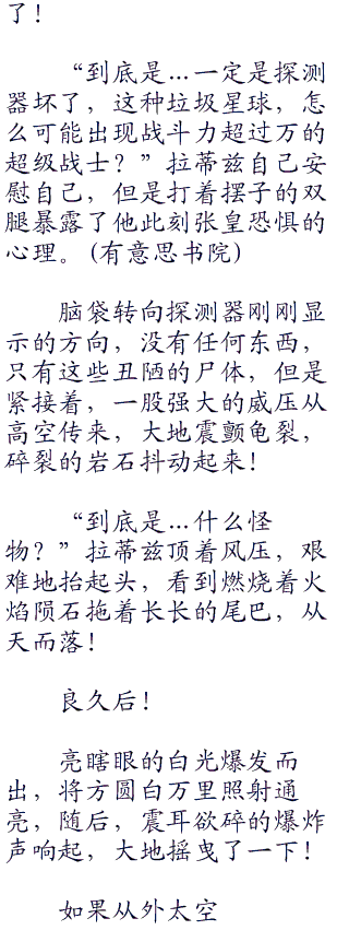 “拉蒂兹!你丫的还想不想要年终奖了?拖拖拉拉到什么时候?这颗星球,五天后就要被贩卖给波尔加人!把那些尸体处理干净!不要影响客人的出价!”探测器耳麦传来了那巴粗暴的声音,听语气,就知道极其的不爽!