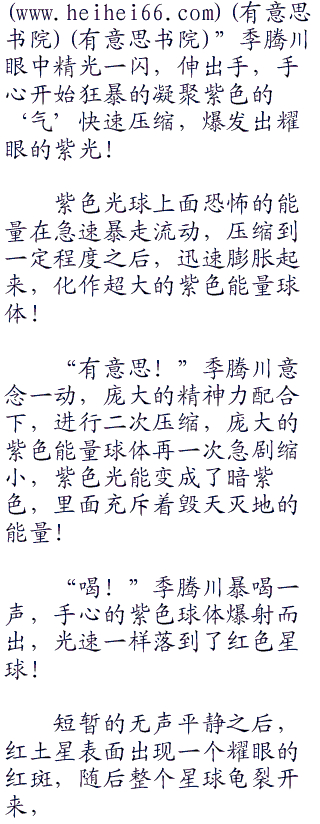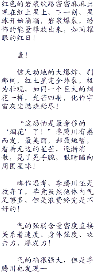 飞船启动,化作一道拖着光尾的流星,一瞬间来到了星球外层,原本比地球还大三倍的红色星球,因为距离的关系,看起来也不是那么大!