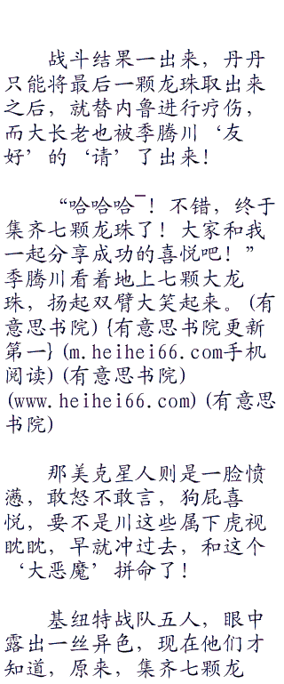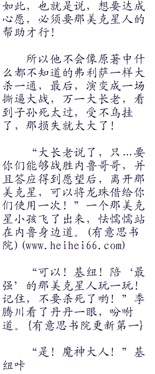 季腾川何尝不想来更硬的手段,但是那美克星龙珠是由那美克星大长老制作的,而且召唤神龙,需要那美克星语,许愿同样