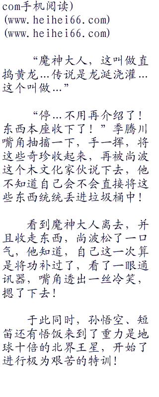 “唔…现在最主要的不是那位神秘的魔神,而是同样有两个极其邪恶的赛亚人正在来地球的途中,预期将在三个月后,抵达!如果连他们都无法战胜的话…后续就不用说了!”界王大人沉吟了一会儿,又将一个极不好的消息道了出来!