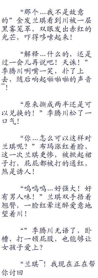“好吧!好吧!没问题!”季腾川走了回来,一把抱过兰琪,手揉捏的兰琪的翘臀!