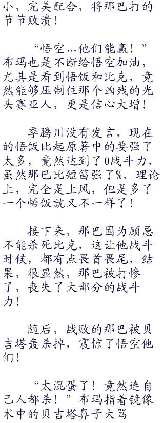 “哇!”那巴捂脸,紧接着,比克和悟饭早就商量好的战术,一下子全部完美的施展出来,一大一