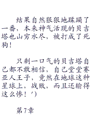 贝吉塔一脸震惊地望着比克,点了一下戴在耳边的侦测器,滴的一声,短笛的战斗力呈现出来!