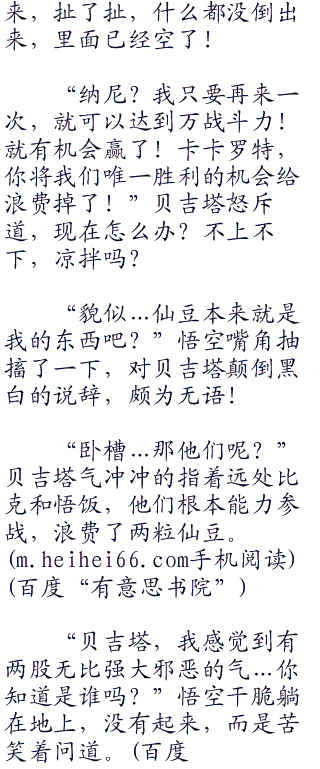 “卡…卡…罗特…我知道错了…给我一粒仙豆”贝吉塔艰难的爬出沙坑,伸出满是伤痕的手,请求道。更方便hei.