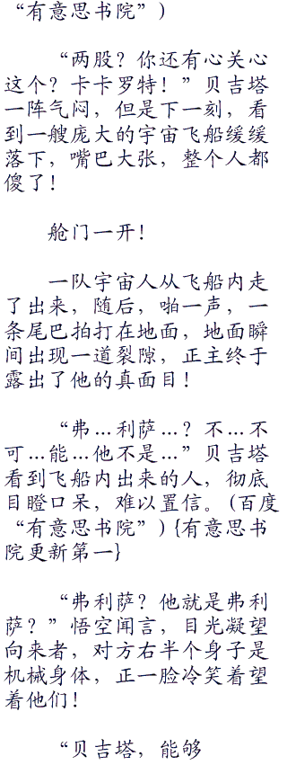 “相信我…这一次是真的了!”贝吉塔欲哭无泪道,尼玛的,老子伤刚刚好,转眼睛又被基纽这混账打的半死,他一定要报复,如果猜测正确的话!