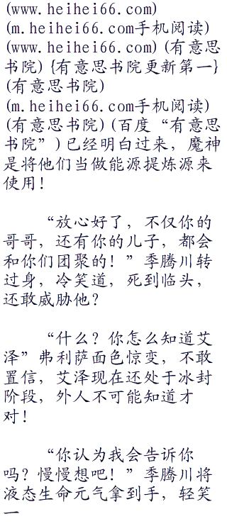 “你看起来,很有精神,恢复的相当不错,那么”季腾川点了一下红色的按钮。<a href="hei." target="_blank">hei.</a>