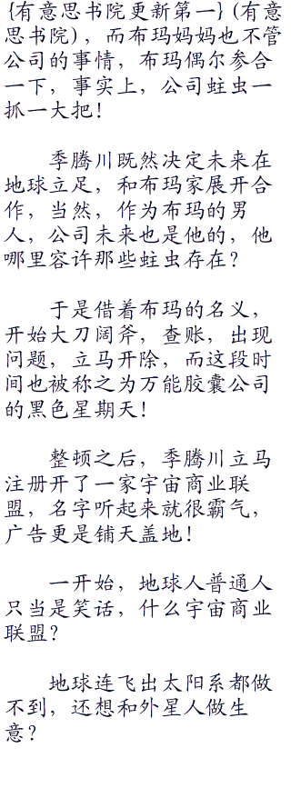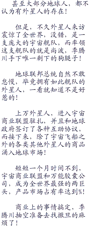 作为布玛家的半个女婿,季腾川很快了解到万能胶囊公司各类发明,占到了全世界发明的%,哪怕布里夫博士再不会经营,也足以成为世界最有钱的人!