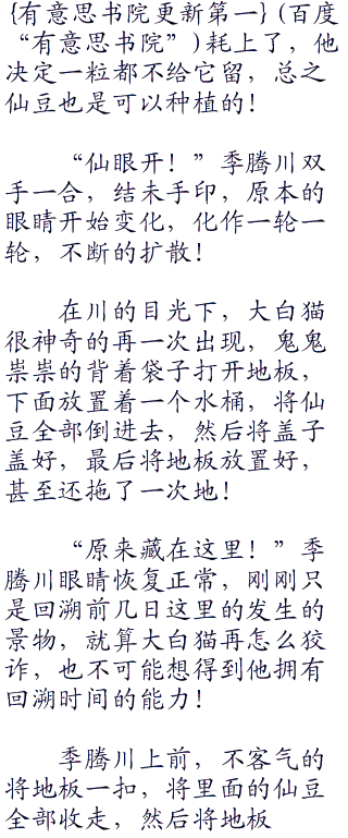 翻来覆去,就是没有找到半颗仙豆,季腾川也跟大白猫