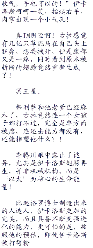 “呼呼呼…可恶,竟然短短三秒钟都不到,我竟然损失了超过%的气!”古拉大口喘气,赤红的双目不敢置信地望着不远处悬浮在半空中的伊卡洛斯,脸上露出了深深的忌惮!
