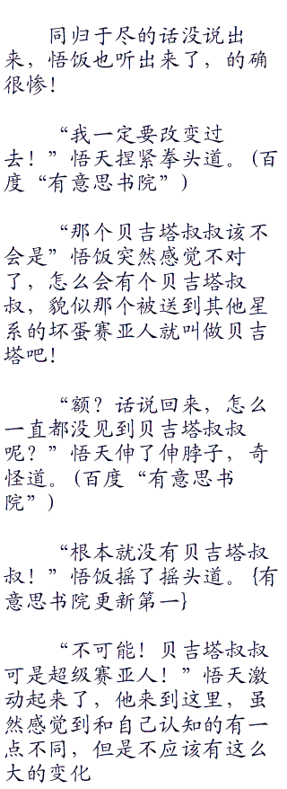 “是吗?”悟饭苦笑一声,问道:“那么未来我会如何?”