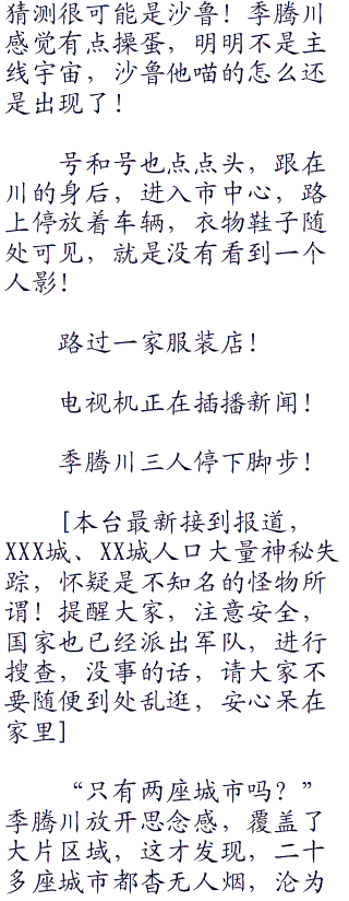 车子驶入城市街道,季腾川在车内眉头一皱,疑惑道:“有点不对劲啊!这里怎么会一个人都没有?”