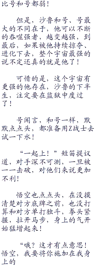 “当然是战斗了!”悟空面不改色,就算敌人再强,他也不会轻易退缩的。hei.