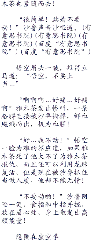 “我就知道”雅木茶一脸颓色,心想,这一次要是能够苟活下来,以后再也不参这档子屎了,太危险了,死了找谁报销都不知道!