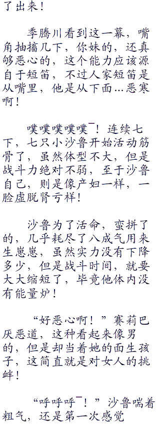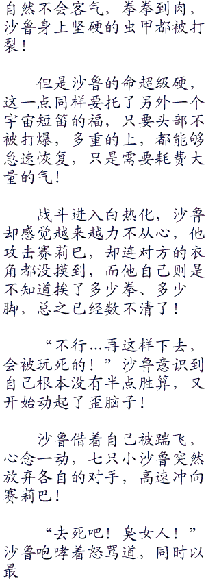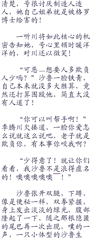 “可恶”沙鲁那个叫做气啊,可惜就如川所说的,现在他才是强者,而自己却是弱势的一方!