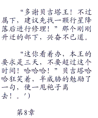 “不是…不是…本界王说的是,从未来平行世界来的悟天!知道了吗?悟空!魔神他一定去了其他宇宙了!”北界王一脸颓废叫道,魔神一走,比可斯达星的负责人伊卡洛斯可不会买他的帐,把这消息告诉她,说不定她会开着比可斯达星跑路都有可能!