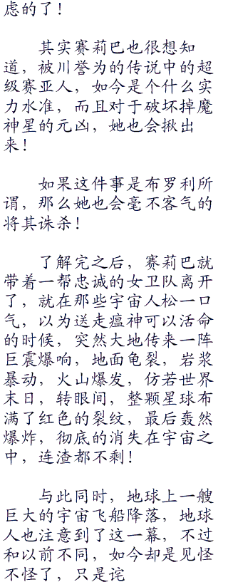 飞船上穿着特殊的太空战衣的赛莉巴率先从飞船上下来,原本坐标记录的魔神星,已经完全消失,沿途有大量的残骸碎片,似乎在痛诉破坏者的恶劣行径!