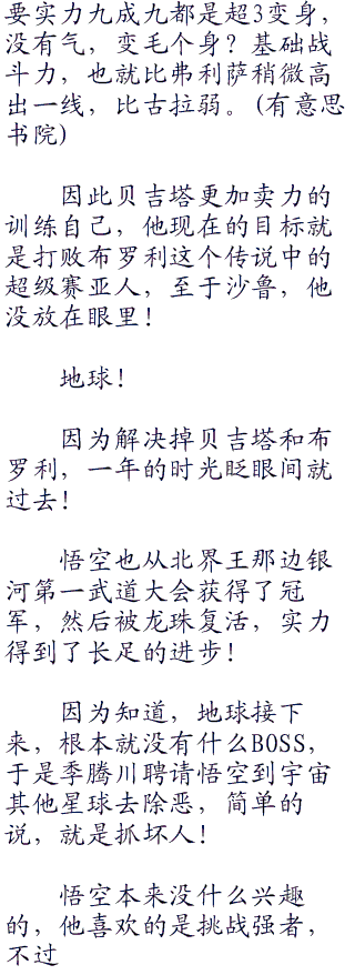 “小子,看你身上这件衣服不错,脱了!”一个壮汉咧嘴一笑,仗着人高马大,居高临下,看着贝吉塔,露出一脸淫笑!