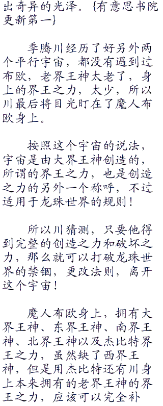 “他?”魔人布欧眯眯眼上下打量了川一会儿,摇了摇头,噘嘴吹气,“他好像很强的样子诶!”