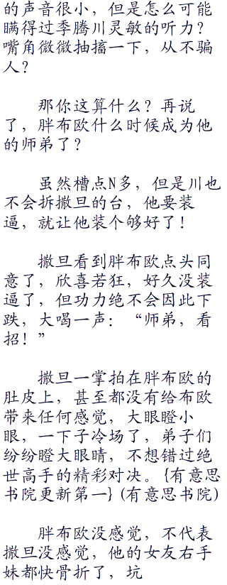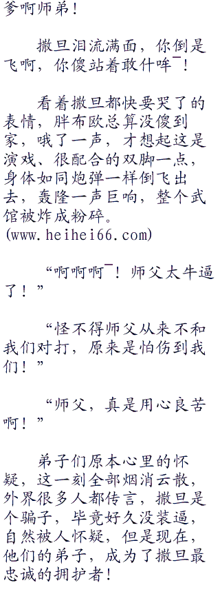 胖布欧万一没个轻重,撒旦那些看似强壮的弟子们可就要血溅当场了,到时候,可不好交代,毕竟他可不是来砸场子的。
