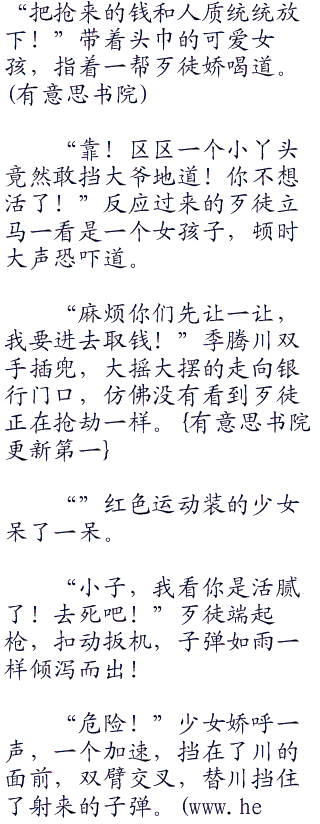 人来人往,当川准备去取点钱,突然BOOM的一声爆炸声,银行门口黑烟滚滚,只见几个持枪、头戴丝袜的歹徒每人都背着一大袋钱冲了出来,而且还劫持了女人质!