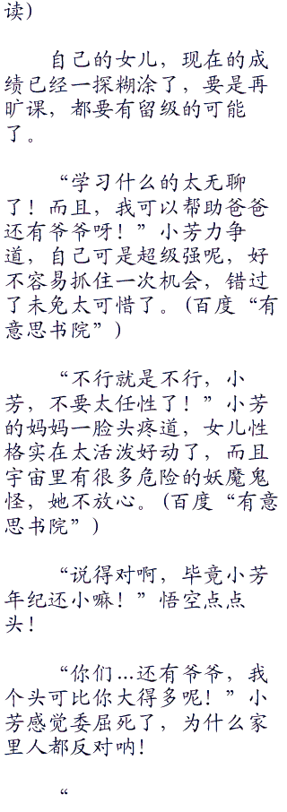 “是啊!爷爷太过分了,变得比我还小!”小芳乘机落井下石,这个爷爷太不称职了,自从自己懂事起,就没有见过爷爷,不知道到哪里去修炼,一年到头,也不回一趟家!